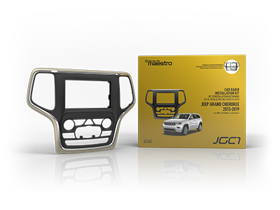 Radio replacement dash kit for Jeep Grand Cherokee vehicles 2014-2021. Includes head unit adapter ready T-harness, a gold and a silver trim along with provisions for 2 different climate controls and USB hub replacement. Maestro RR and iDatalink-compatible aftermarket radio are required and sold separately. Head unit adapter for plug and play installation is also sold separately.