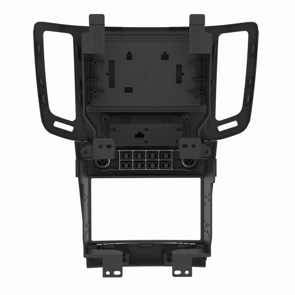 Metra’s TurboTactile™ and TurboTouch® kits come together and feature the best of what each kit has to offer. This kit features easy-to-use rotary knobs that allow for the control of climate functions along with a 7” touchscreen that retains most of the features normally lost when replacing the factory radio. Additional factory-style hard buttons have laser-etched graphics for access to vehicle personalization menus. Metra’s built-in patented interface technology retains climate control, safety, and steering wheel control features. The vehicle’s hazard button and passenger airbag indicator have also been integrated into the kit. This kit is painted scratch-resistant matte black to match the factory finish and includes installation parts needed for a Double-DIN aftermarket radio installation.
