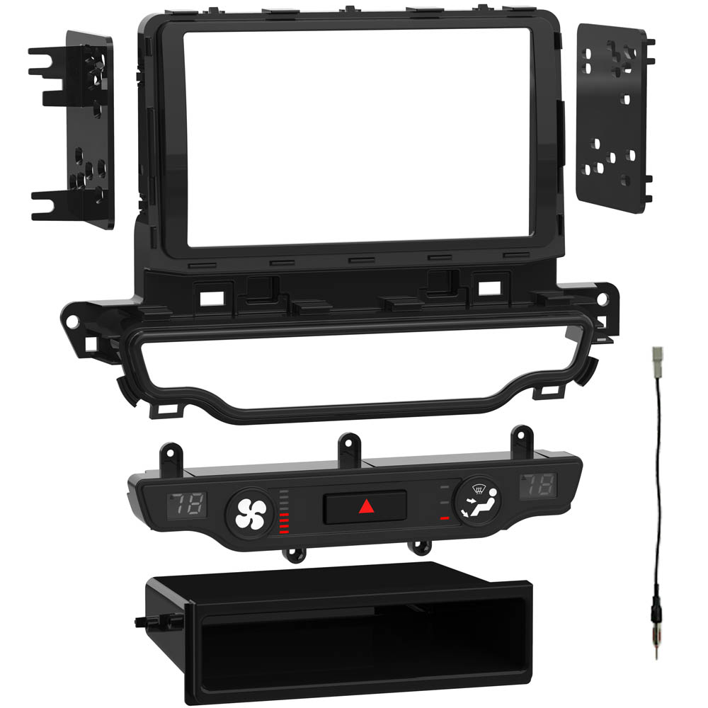 This stereo installation kit has been engineered to help you install either a 2” tall (Single-DIN) or a 4” tall (Double-DIN) aftermarket radio into the original vehicle dashboard. This dash kit makes radio replacement simple and comes with a pocket that is installed below the 2” radio to fill the extra space in the radio opening, which can be used for storage. The pocket is not needed when installing a 4” tall radio. The dash kit is painted high gloss black to match the original look and feel of the vehicle’s dashboard. Installing an aftermarket radio can upgrade the sound quality and provide additional features the original factory radio couldn’t offer, but it requires this dash kit to make it fit.