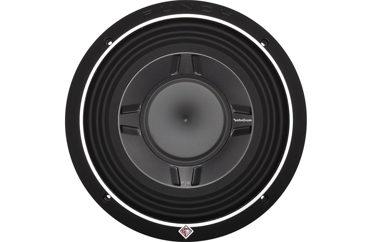 Rockford Fosgate P3S 10" shallow mount subwoofer delivers “Punch” even when depth is limited. The P3SD4-10 features Dual 4-Ohm voice coils for wiring flexibility and 300 Watts RMS power handling. The Rockford Fosgate P3S 10" shallow mount subwoofer delivers Punch, even in depth limited situations. Rockford Fosgate understands all vehicles are not the same, because some cannot accommodate deep subwoofers. In the past, that meant no Bass. Not anymore! Now even depth challenged vehicles can have REAL Bass and the Dual Voice Coil allow configurations for every application. Shallow woofers are specifically designed for spaces where a traditional woofer cannot be used.
